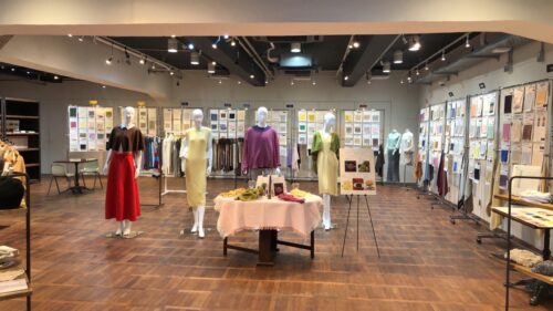 一般的な絹紡糸と比べて「1キロ当たり4千円ほど安くなる」とし、モノの値段が上がる中で、使い勝手も訴求する。糸や丸編み地などで提案する。24年春に開いた単独展示会でも一部商品を見せたが、今回の展示会を通じて改めて提案強化を図る。