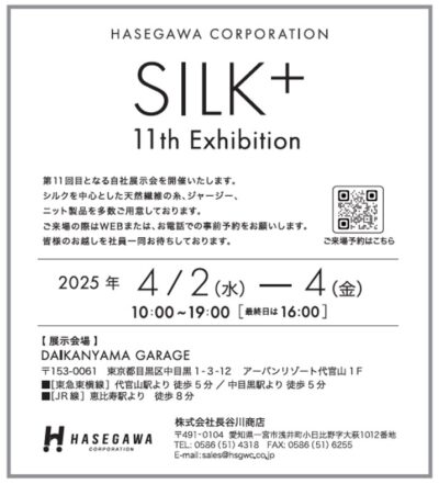 シルク製を中心に、糸や編み地を製造・販売する長谷川商店は来月2~4日に東京で単独展「SILK+」を開く。