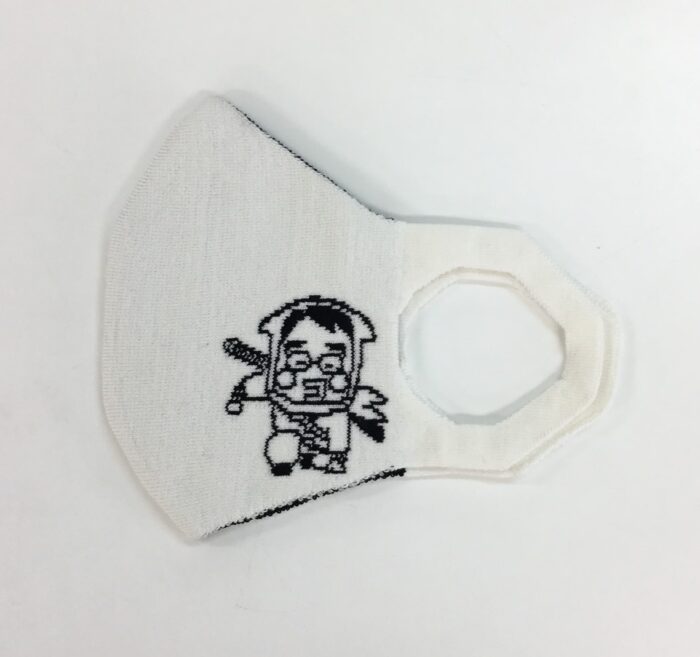 The mask provided by Hasegawa Corporation is a 3D knit type using silk yarn. The pattern of the character “Hidecchi” that imitates Governor Omura is woven with jacquard fabric.