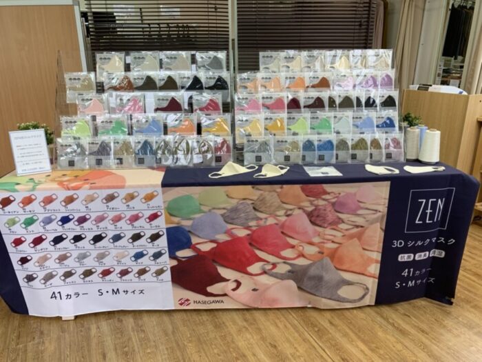 The company started product development in the fall of 2016. They mainly handle a wide range of underwear, socks and cut-sews using silk yarn to knit ties. It is the mask that has increased the variety especially from this year. They increased the variety when they sold silk jersey fabric as a mask kit from February.