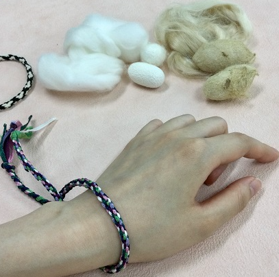 After giving a lecture on silk to children, ask them to make misanga using silk yarn.