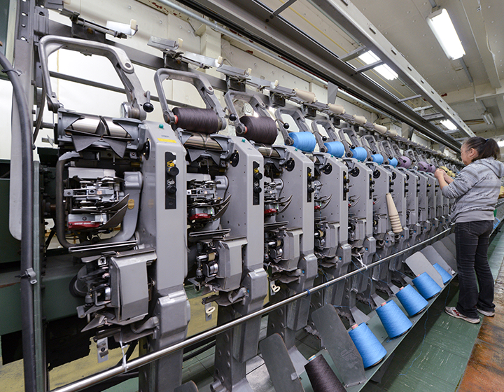 HASEGAWAは自社内一貫生産体制の確立を目指しており、様々な先進設備の導入を積極的に行っています。 また商材の拡大にも取り組んでおり、糸から生地、セーターなどの製品開発も行えるよう、それを実現できる設備機器・デザインソフトを導入。 さらに、取引先の要望に応える形での、設備投資や体制強化にも取り組んでいます。