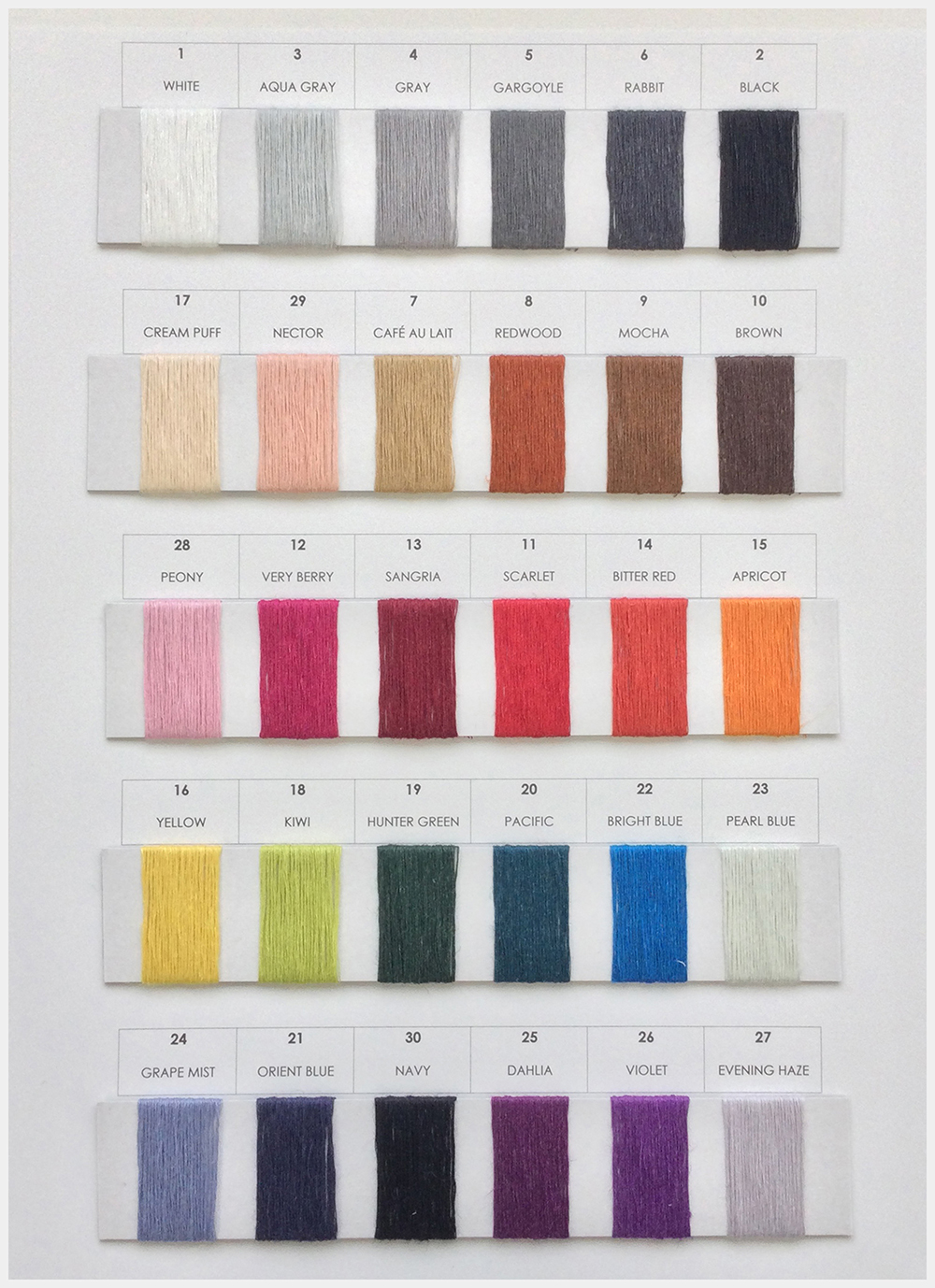 Eight linen yarns are twisted for low gauge. Due to the soft twist, there is a possibility of skewing for plain stitch for flat bed knitting. The number of twists can be adjusted, so please let us know when ordering.
