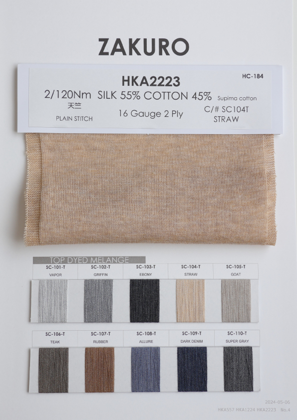 | カテゴリー | ストレート,シルクコットン,1/31 ~ 1/60,家蚕混紡糸 | カタログNO | HC-184 |